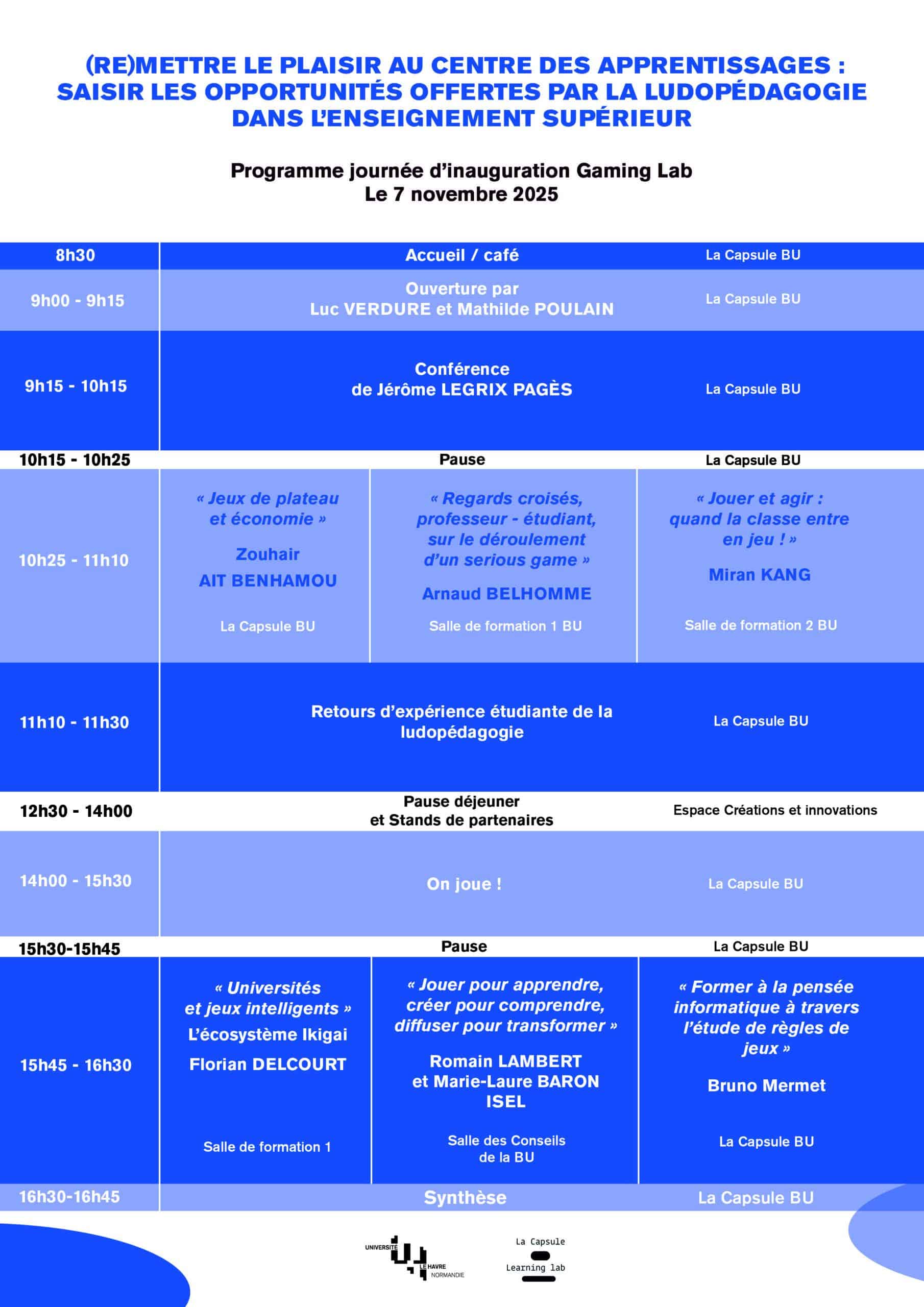 Résultat d’un travail de fond porté durant près de deux années, l’Université Le Havre Normandie inaugurera son Gaming Lab, le vendredi 7 novembre 2025 à la Bibliothèque Universitaire. Cette action soutenue financièrement par la Région Normandie, s’inscrit dans la politique d’innovation pédagogique portée par l’université. Pour marquer cet événement, une journée d’étude exceptionnelle est organisée autour du thème : “(Re)mettre le plaisir au centre des apprentissages : saisir les opportunités offertes par la ludopédagogie dans l’enseignement supérieur”.